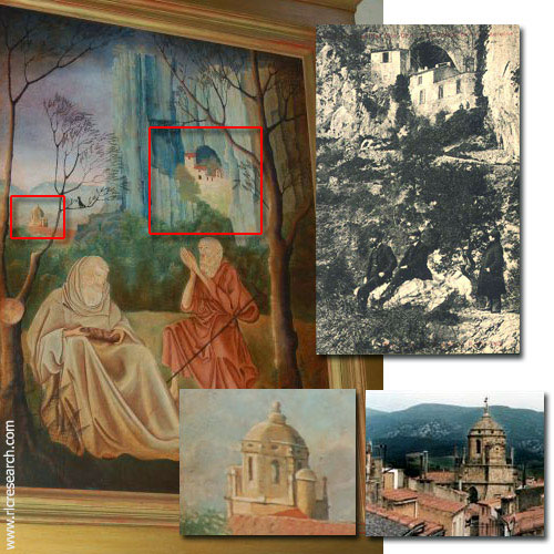Temptations of St. Anthony with clear references to the Hermit's retreat in the Gorges du Galamusand the village of St-Paul-de-Fenouillet