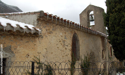St-Just-le-Bézu is a small village at the foot of the mountain and Templar ruins of Bézu. The few elderly people that remain in the village retain a vivid memory and oral tradition of events that occurred there over the last few hundred years. They speak about the turmoil caused by the French revolution and how the local priest purchased the properties of the fleeing nobles for blackmail prices, in order to become the richest man in the village, just prior to fleeing himself. Guillaume Joseph Eugène Grassaud was born in St-Just-le-Bézu in 1859. His parents, Baptiste Grassaud and Marie-Louise Flamand were well respected members of the community. In the village, which houses only sixty souls today, there's a tiny church that has a quiet down-to-earth nature to it and in which some Templar references can still be found, perhaps related to the proximity of the former Templar commanderie. Most remarkable are the two crosses on the altar that resemble Templar crosses but on closer examination appear to be made out of fishes or possibly pieces of rope. Like most churches in the region, the church is adorned with the obligatory statues of St. Antoine the Padoue and St. Pierre, and of course St. Just, after whom the village was named, and of Ste Eugénie, after which Eugène Grassaud was named. Jeanne d'Arc is there too. The altar is one of the few original pieces in the church. All the rest had to be replaced after a priest destroyed the entire interior in a rage after the promulgation of the Separation of Church and State in 1905. Apparently he didn't take that very well.
